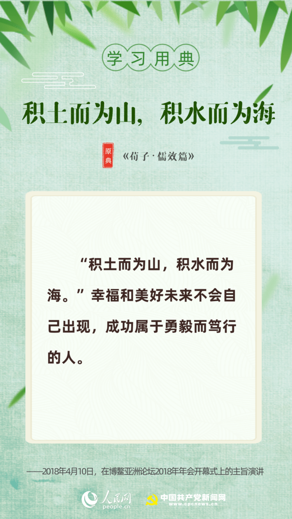 【编者按】“志不求易者成,事不避难者进。”近日,习近平总书记给中国石油大学(北京)克拉玛依校区毕业生回信,对广大高校毕业生提出殷切期望。“人生在勤,勤则不匮”“积土而为山,积水而为海”……近年来,习近平多次引用诗句典故,激励包含广大青年在内的全党全国各族人民拼搏奋进、埋头苦干。正值“战疫”“战贫”关键时刻,人民网·中国共产党新闻网与您一起回顾习近平讲话中关于“奋斗”的10个名句。