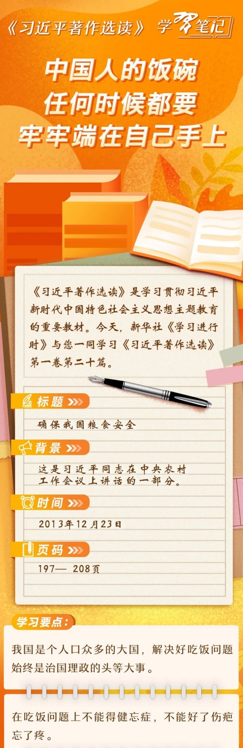 《习近平著作选读》学习笔记:中国人的饭碗任何时候都要牢牢端在自己手上