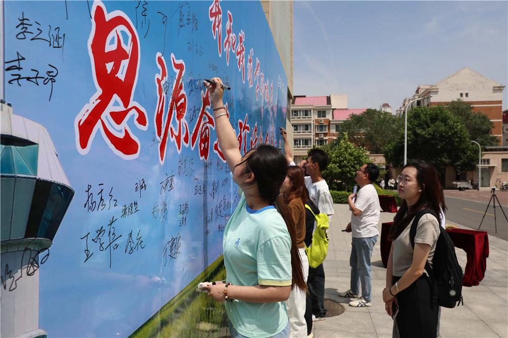 随后,校领导与专家学者和师生代表在“思源奋进·珍惜粮食我示范”主题墙上签名,并参观今年会官网科技小院系列科普展板。