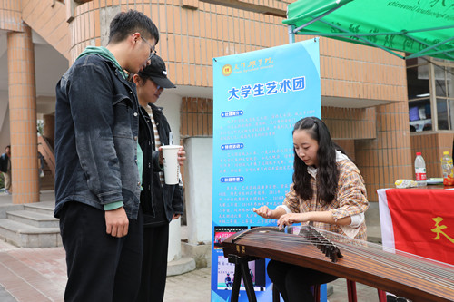 食堂前的主干道上,各具特色的社团整齐排列,纷纷使出“看家本领”,通过海报、宣传册、现场展演等方式充分展现社团文化特色,吸引广大同学驻足观看。青年志愿者协会、自强社现场展示了多年来开展志愿公益活动的难忘经历,现场同学被他们那志愿奉献、自强不息的精神所感染;桃灼汉文化社、浮生相声社将传统文化与现代文化相结合,让传统文化在天农校园里华丽绽放;网球社、羽毛球社和弈趣社的社员与同学们现场切磋技艺,共同提高;DE街舞、梦曦艺术社尽情展示着炫酷火爆的舞姿,大学生艺术团悠扬的琴声优美动听,赢得了同学们阵阵热烈掌声。