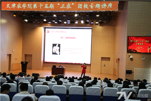 此次讲座由马克思主义学院李月玲教授主讲,李月玲以“坚定理想信念”为主题,结合党史、新中国史、《习近平给全国涉农高校的书记校长和专家代表的回信》等内容,围绕什么是理想信念、为什么要坚定理想信念、怎么坚定理想信念等方面展开了宣讲。