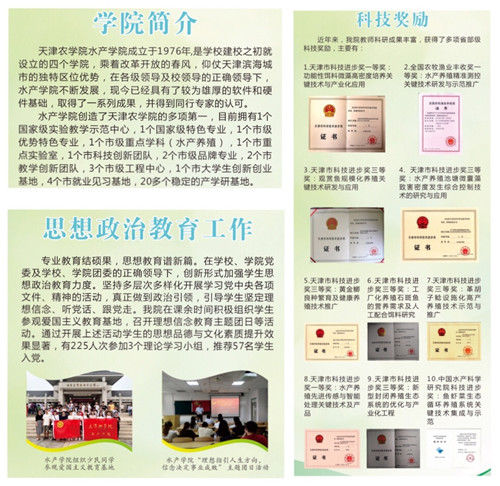 围绕着美轮美奂的水族箱,是由十三幅整齐排列的展板组成的水产学院教学、科研、学生工作成果展。展板上一列列详细的数据、一幅幅生动的照片,体现了“十三五”以来水产学院在学校党委的坚强领导下,坚持立德树人的根本任务,在教学、科研、学生工作等方面取得的喜人的成就,引得师生驻足观看、纷纷称赞。此成果展为改革开放40周年献礼,反映了改革开放以来的发生的巨大变化和取得的成果,弘扬了“爱岗敬业 艰苦奋斗 团结向上 自强不息”的天农精神,彰显了天农“敏学切问 躬勤耕稼”天农文化,激发了全院师生主动融入京津冀协同发展、助力乡村振兴战略、建设高水平农业大学的干劲。