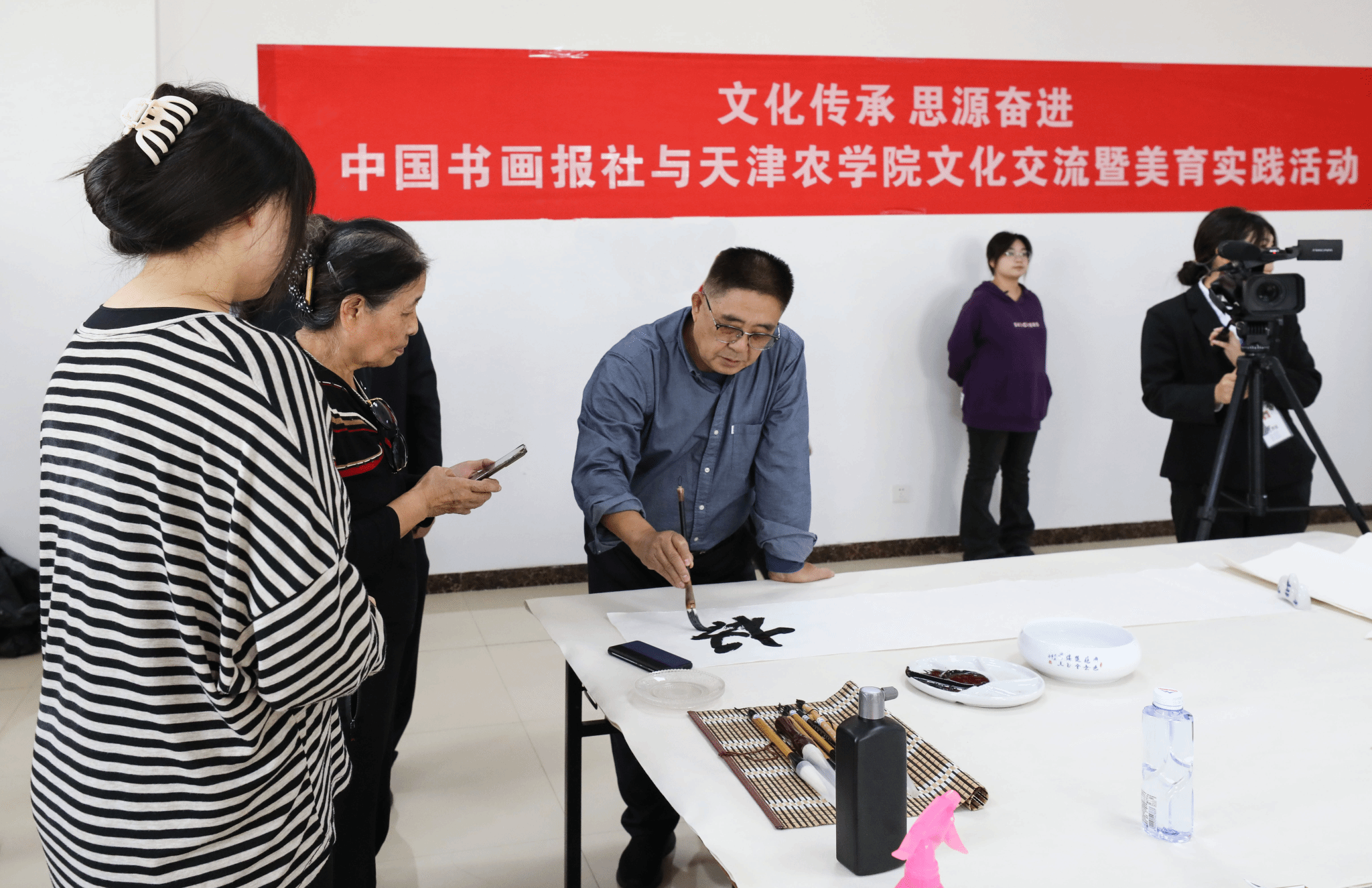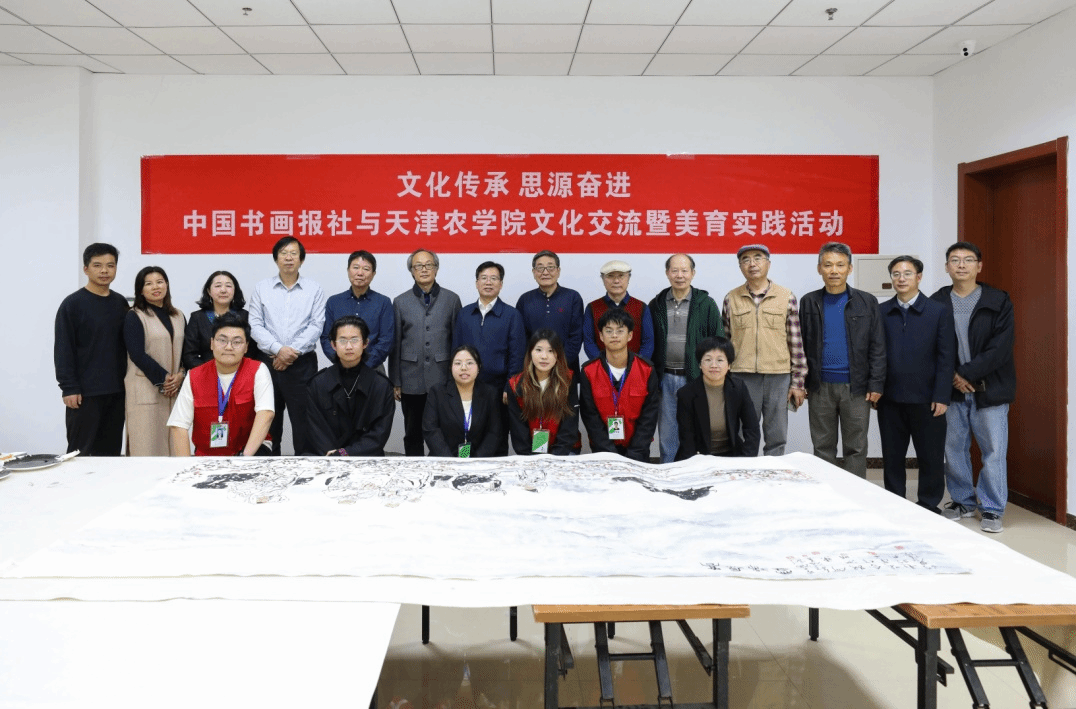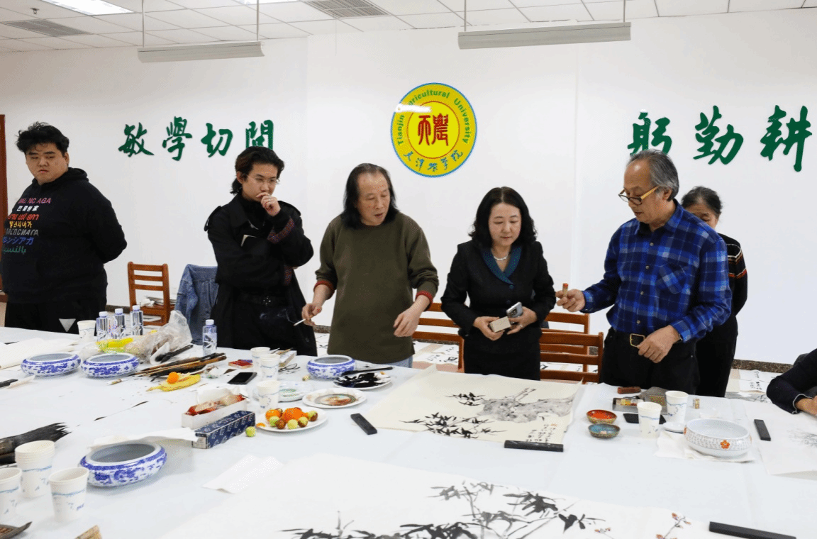 校党委书记李鑫致欢迎辞,他表示,非常感谢各位艺术家能够莅临学校进行笔会活动,此次活动是落实党的二十届三中全会精神、全国教育大会精神和贯彻落实习近平总书记视察天津时提出的“四个善作善成”重要要求,进一步推动文化传承发展,构建“三全”育人、“五育”并举大思政工作格局的重要举措,是开展大学生美育教育实践的重要内容,希望通过此次活动能够进一步丰富学校“思源·奋进”文化,进一步弘扬天农精神,打造自觉、自省、自律、自查、自纠的质量文化,提升天农师生的美育水平,达到以文化人的活动效果。