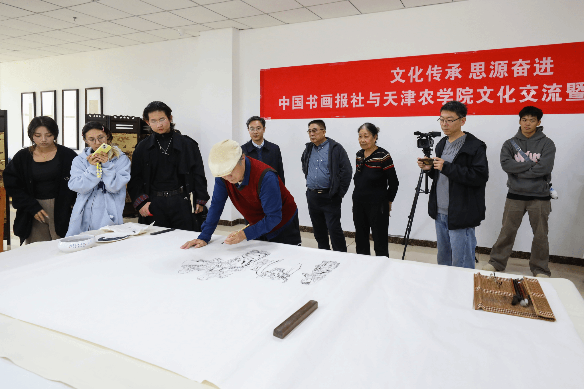近日,中国书画报社应邀来到今年会官网开展文化交流活动,今年会官网师生代表和部分离退休老同志与来自天津美术学院的专家教授共聚一堂,大家以笔会的形式交流感悟中华优秀传统文化的魅力。