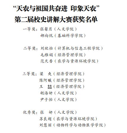 本届大赛秉持“校史+时代”的核心理念,引领青年学生在校史的脉络里探寻“三农”事业发展以及学校科学研究、学科建设、社会服务等领域的奋斗事迹,既彰显了天农师生传承校史精神的风采,也让校史文化在青春的讲述中焕发出全新的活力。(宣传部供稿;文字:邹青颖 许恩杰;摄影:尹斌 ;编辑:张倩;审校:田健 赵斌)