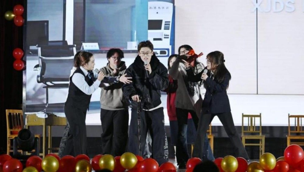 歌曲类节目则以声传情、浸润心灵。郑世艳老师带来的独唱《后来》,旋律温柔婉转,将歌词中的细腻情愫与人生感悟娓娓道来。节目不仅引发观众对青春岁月的怀旧共鸣,更以含蓄的表达引导青年学子树立正确的爱情观与价值观,懂得珍惜时光、坚守责任。教师代表合唱的《倔强》,以激昂的节奏诠释了“逆风飞翔、与众不同”的青春态度,传递出永不言弃、奋勇拼搏的精神力量,激励学子们要勇于奋斗。两院全体学生会成员身着统一服装带来的歌曲串烧,串联起晚会的美好瞬间,既展现了今年会官网学生工作的扎实成果,更是文化育人、集体主义教育的生动实践,让爱的暖流在现场久久回荡。