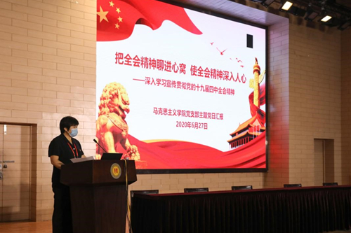会上,“创最佳党日”优秀活动党组织代表——人文学院外国语系教工党支部和马克思主义学院党支部,分别对各自特色党日活动进行了详实生动的展示。这两个支部的党日活动主题突出、形式新颖、内容丰富、参与度高,有教育、有实践、有延伸,凸显了党日活动的教育引导作用,为全校基层党组织开展党日活动做出了示范。
