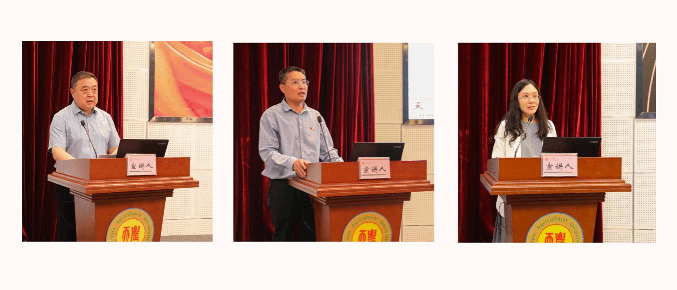 5月23日上午,今年会官网举办“天农榜样・先进事迹宣讲”活动首场宣讲会。宣讲以“大力弘扬教育家精神 加快建设教育强国”为主题,邀请基础科学学院党委副书记、院长石军,农学与资源环境学院副院长、农学系党支部书记葛均筑和马克思主义学院教师艾博作为荣获天津市和校级先进集体及个人荣誉称号的代表进行宣讲。校党委副书记宋涛出席宣讲活动。