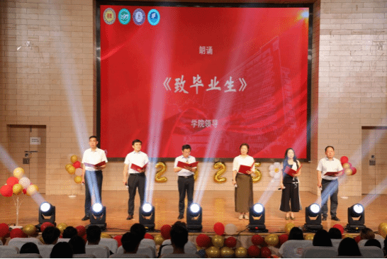 在文艺演出环节,三个学院精心策划了丰富的节目,其中由三个学院领导集体朗诵的《致毕业生》,回顾了学生大学四年的成长点滴,也充满了对毕业生未来的美好祝愿;工程技术学院郑世艳老师的一首《追梦人》,激励青年学子牢记嘱托,在追梦的道路上实现个人价值;毕业生代表用一帧帧大学四年的生活点滴演绎的《入海》,真情诠释了学生对母校的热爱、对校园的不舍以及对未来征程的信心。