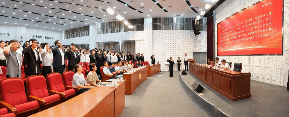 人文学院毕业生欧晓红带领全体2025届校友工作联络员宣誓。校友会法人代表 、副理事长监誓。