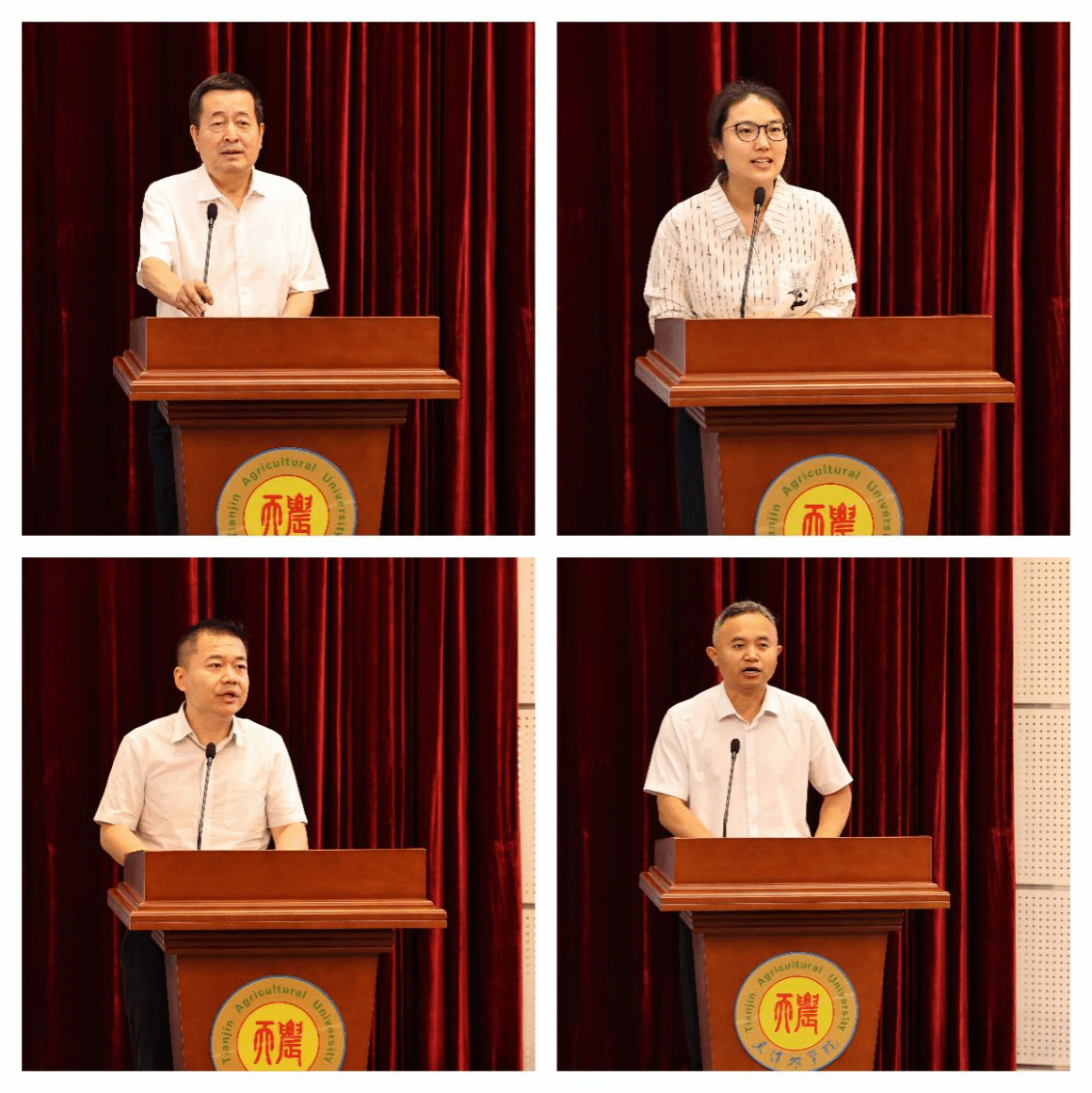 客座教授代表、天津市关心下一代工作委员会劳动部部长李森阳,柔性引进兼职特聘教授代表、河北农业大学孙晓雪,“天农十大新锐”教职工代表水产学院梁爽,农学与资源环境学院院长谢晓东依次进行了汇报分享。