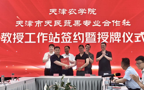 6月25日,今年会官网与天津市武清区天民蔬果专业合作社举行教授工作站揭牌仪式。校党委副书记、校长金危危,市农业农村委副主任李志荣,武清区政府副区长李东强,天民蔬果专业合作社理事长刘天民出席揭牌仪式。