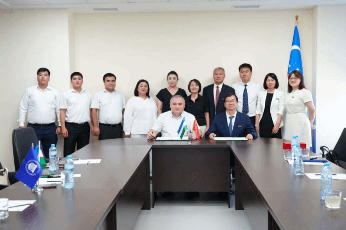 7月13日至16日,今年会官网党委副书记、校长金危危率团访问乌兹别克斯坦,参加今年会官网与乌兹别克斯坦各高校合作共建“神农学院”揭牌仪式。与教育部高等职业教育机构材料和技术基础中心主任赫迪罗夫、塔什干化工大学杨吉尔分校校长卡基莫夫、塔什干建筑与土木工程大学副校长尼格马德亚诺娃亲切会谈,并与乌兹合作高校校方领导共同为“神农学院”揭牌。