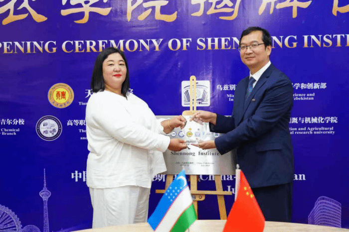 金危危在致辞中指出,借此次揭牌仪式的契机,我们将与各位乌兹合作伙伴一道,共同推进“神农学院”招生及品牌建设。乌兹别克斯坦合作高校、科研机构以“神农学院”的品牌项目在当地进行招生,学生可以通过“2+2”或“3+1”项目及短期学习的形式来津学习。中乌合作方将在园艺、水产、环境设计、水文与水资源工程等专业联合开展本科层次的合作办学。我们将在乌兹别克斯坦和中国政府的关怀和领导下,以此次携手为新的起点,依托优良的办学条件、先进的办学理念,尽快创出形象、创出品牌,共同将“神农学院”打造成两国合作办学的示范和标杆,打造成在两国农业教育领域具有一定影响力的农业教育机构。正如乌兹别克斯坦谚语“友谊的土壤里,总会长出甜蜜的果实”,这些合作正孕育着丰饶的未来。相信“神农学院”的项目不仅可以提高我们共同的办学水平,增强合作高校在农业领域教育的竞争力,促进相关产业增收与经济发展,同时可以加快促进双方现代农业教育体系和科研体系的发展。