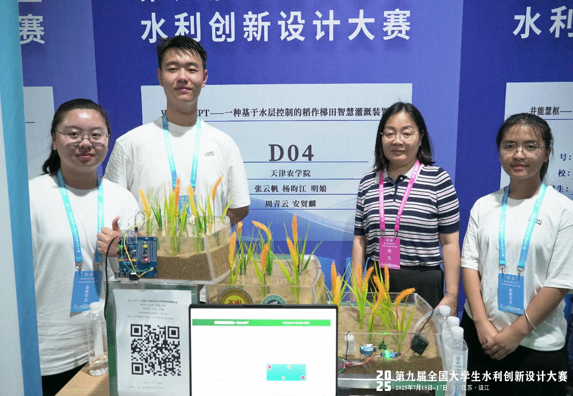 第九届全国大学生创新设计大赛主题为“新质生产力驱动下的智慧水利创新设计”,利用多种技术围绕水利新质生产力发展进行实物作品的创新设计与制作,注重节水优先、人水和谐、可持续发展及新技术的应用。经大赛评审委员会评审与合议,最终,由周青云教授、安贸麟老师指导,张云帆、杨昀江、明娘设计的“Water GPT——一种基于水层控制的稻作梯田智慧灌溉装置”获得特等奖,周青云教授、安贸麟老师获优秀指导教师奖。由张茜副教授、安贸麟老师指导,肖秉轩、刘世明、王思琦、张楠设计的“太阳能驱动自吸式水上净化器”获得二等奖,充分展现了天农学子在水利创新领域的专业素养与实践能力。
