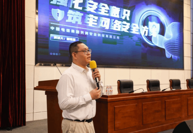 随后,中国电信高级解决方案专家郝瑞辰作了题为《强化安全意识 筑牢网络安全防线》的专题讲座。通过“案例解析+有奖问答”的互动模式,生动解读《中华人民共和国网络安全法》《中华人民共和国个人信息保护法》核心内容,现场师生积极参与知识竞答。