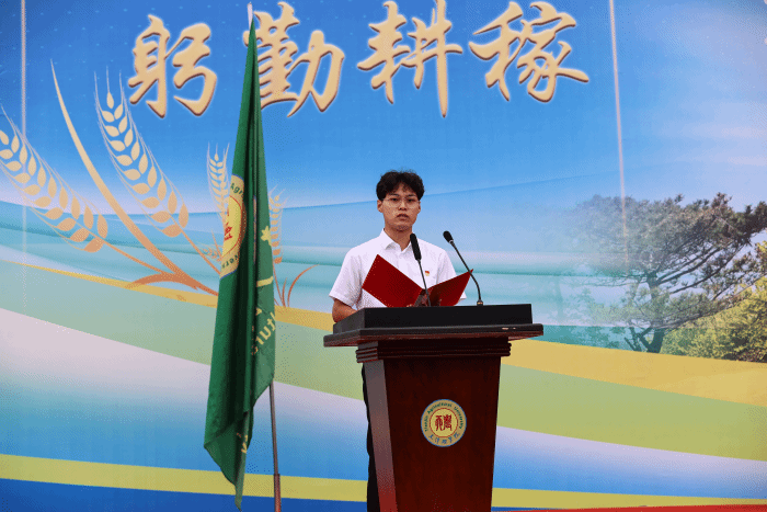 基础科学学院2025级功能材料专业本科生安怡波同学代表全体新同学郑重承诺,作为天农的新生力量,要刻苦学习、努力拼搏,在学校“思源·奋进”文化氛围里,实现“爱党、爱国、爱农、爱校”的价值追求。立志以“小我”融入祖国和人民的“大我”,以实际行动践行天农人的使命。
