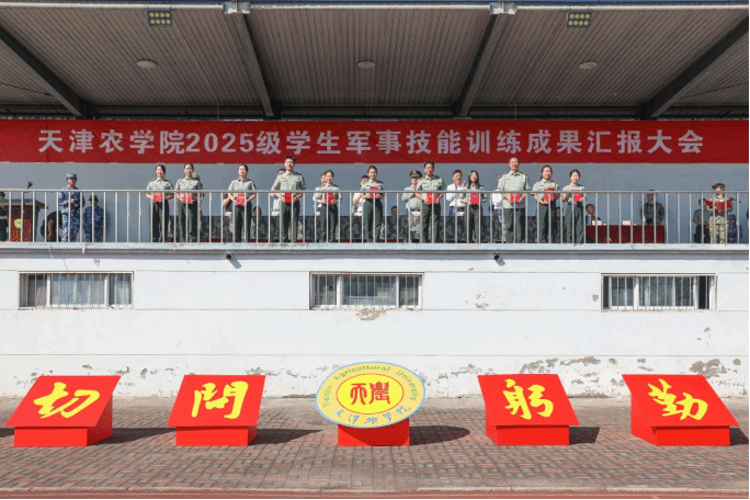 张民宣读对2025年学生军训先进集体、先进个人表彰的决定,对前期评选出的2024、2025级学生军训先进集体、优秀教官、天农最美退役大学生、优秀军训学员和优秀带训教师等进行了表彰并颁发荣誉证书。此外,还推选出11间标兵宿舍,带动了宿舍内务环境的整体提升。