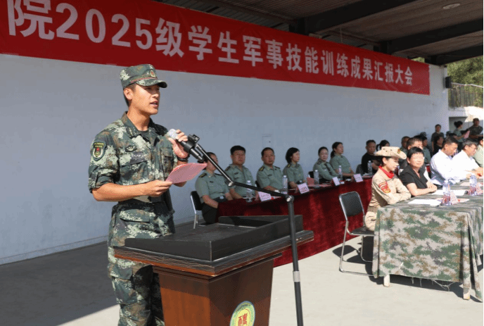 优秀参训学员代表、工程技术学院2025级顾梓萌分享了从“娇弱学子”到“坚毅战士”的成长历程,军训教会了自己坚持与担当。