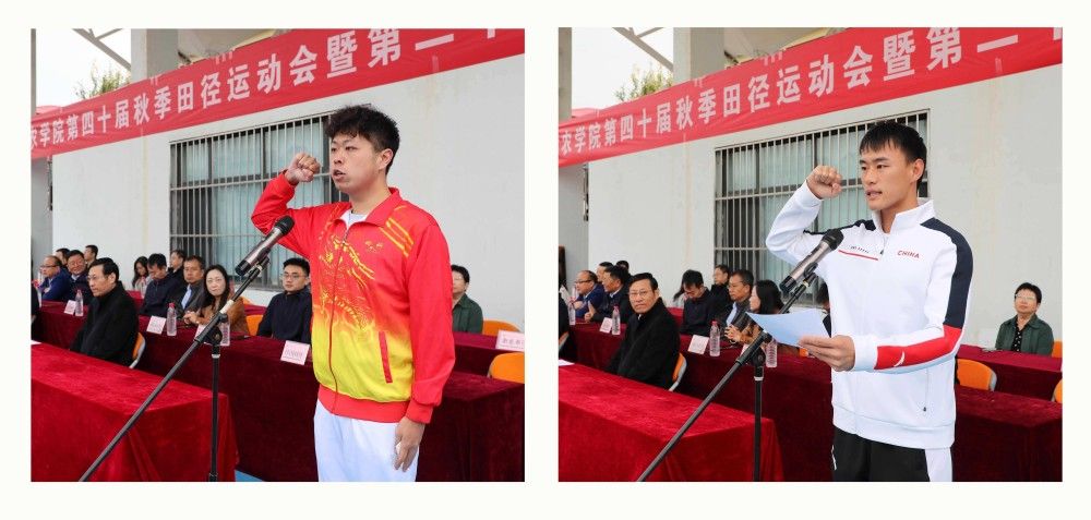 动物科学与动物医学学院万子坤同学代表全体运动员宣誓,体育教学部王敏学老师代表全体裁判员宣誓。