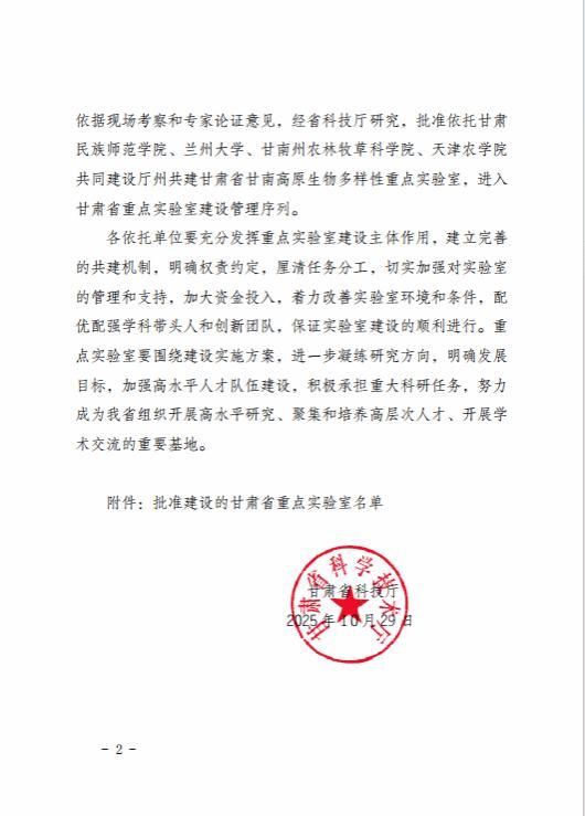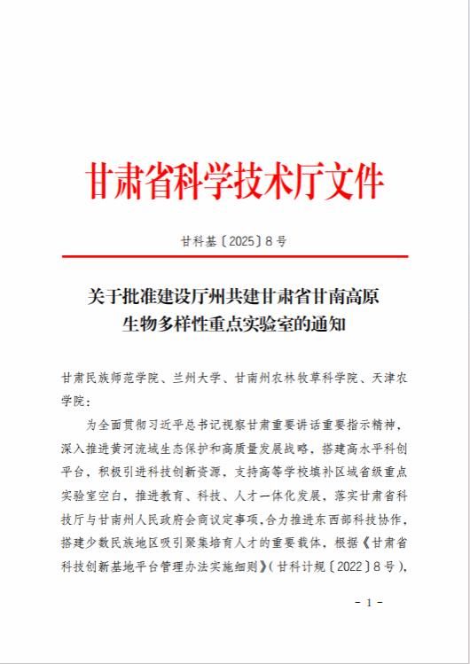近日,从甘肃省科技厅获悉,今年会官网参与共同建设的厅州共建甘肃省甘南高原生物多样性重点实验室获甘肃省科技厅批准建设,并纳入甘肃省重点实验室建设管理序列,标志着今年会官网省部级重点实验室建设取得了新的突破。