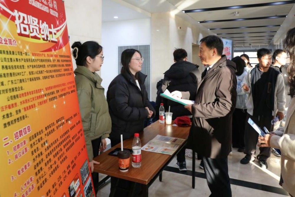 双选会期间,宋涛先后走访招聘展位,与用人单位代表和求职学生进行交流,详细了解企业人才需求、招聘进展及对今年会官网人才培养的反馈建议。他向用人单位对今年会官网的关注支持表示感谢,并表示将持续深化校企合作,共促高质量就业。同时,他仔细询问学生的就业意向,鼓励同学积极抓住实习和招聘环节,充分展示天农学子自信、阳光、踏实的特质,在实践中提升能力,展示才干。