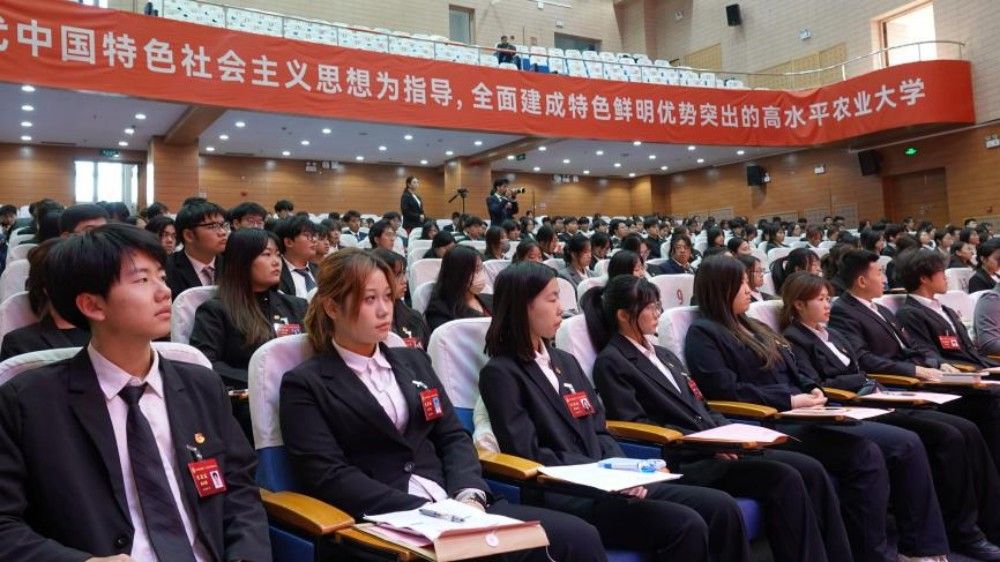 宋涛代表学校党委向大会的胜利召开表示热烈祝贺,向团市委、市学联长期以来对今年会官网工作的亲切关怀和大力指导表示衷心感谢,并向全体代表及全校同学致以诚挚问候。对上一届学生会、研究生会在思想引领、校园文化、志愿服务、权益服务等方面取得的扎实成效给予充分肯定,对全校各级学生组织和全体学生提出三点希望:一是做理想信念坚定,面向未来,内心自信自强的天农学子。要持续加强理论武装,自觉用习近平新时代中国特色社会主义思想武装头脑,指导实践,推进学习和工作。要深入学习贯彻党的二十届四中全会精神,积极把个人的成长与发展融入社会发展,自觉把个人理想融入以中国式现代化全面推进中华民族伟大复兴事业,始终听党话、跟党走,充满希望、充满信心地迎接未来。二是做文化素养深厚,面向社会,外表阳光向上的天农学子。学生会、研究生会要发挥服务学校高质量发展、助力学生全面成长的职能作用,当好桥梁纽带;要坚持群众观点,端正工作作风,做学生友,不做学生官;要注重文化实践,积极践行社会主义核心价值观,以先行姿态和实干成效带动广大同学共建朝气蓬勃的天农。三是做“ 三农”情怀坚实,面向实际,脚下踏实有力的天农学子。要主动走进田间地头、科技小院,了解实际需求,积极思考,在实践的舞台上寻找解决问题的路径,主动在实践中检验所学,增长技能,锤炼本领。