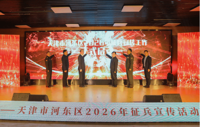 在全场热烈的掌声中,各位领导在主会场共同启动2026年河东区征兵宣传活动,河东区属地街道、高校同步以“线上+线下、室内活动+室外宣传”相结合的模式,共同营造弘扬崇军尚武精神的浓厚氛围,扩大征兵宣传覆盖面。