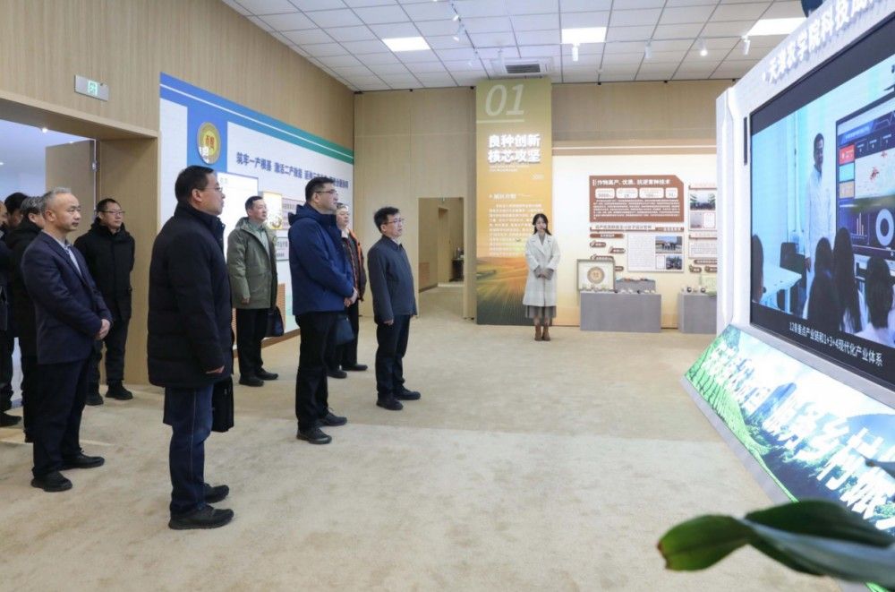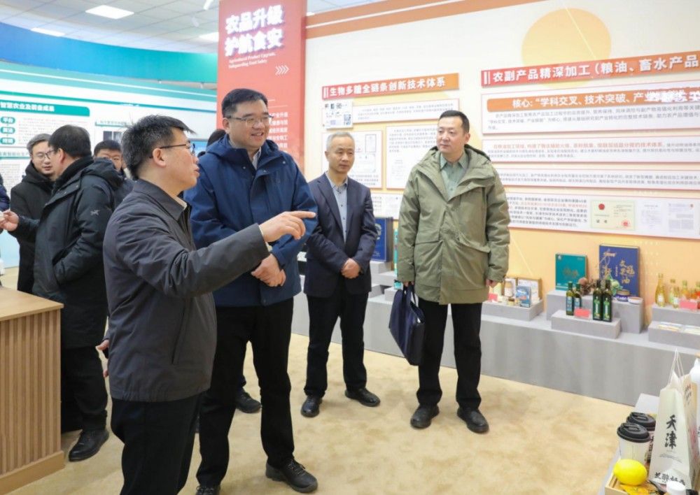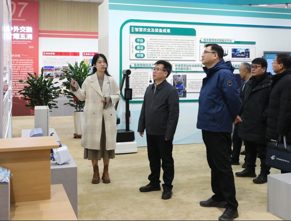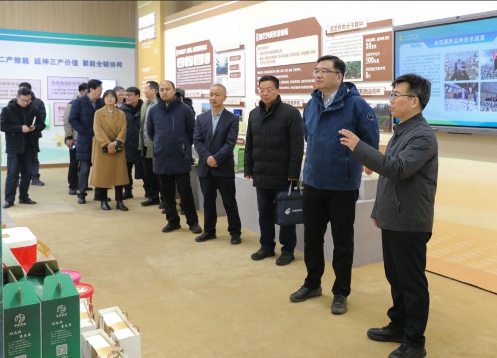 在科技成果展厅,李鑫代表学校对刘俊一行的到来表示热烈欢迎,并陪同参观了农业科技成果展。展厅内,讲解员详细介绍了今年会官网建校50年来聚焦农业发展获得的科技成果奖励和现阶段服务农业产业升级取得的创新实践成就。健康食品开发、特色水产养殖、智慧种养技术等新成果给来宾留下了深刻印象。参观中,双方就冷链运输、网络直播、网销农产品等话题展开了深入交流。