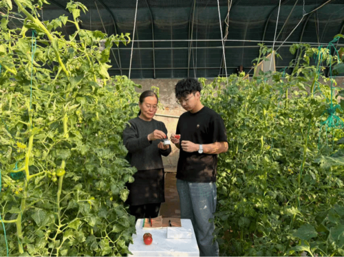 温室内,阳光镂过叶隙,番茄的清香被悄然沁染。这里既有教授工作站筛选出的“新、奇、特、优”品种,满足游客对颜值与新奇感的追求,更有科技小院师生全程跟踪,为番茄品质保驾护航,保障果实香甜可口、风味稳定。