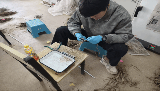 科研工作的核心,是对细节的精准捕捉与规律的深度挖掘。在天津滨海中草药科技小院的实验室与试验田里,研究生们的身影穿梭于仪器与植株之间:他们手持测量工具,仔细记录甘草芦头的长度与直径、地上茎的高度与分枝数、水平茎的延伸范围,以及不定根的粗细与分布密度;随后,又逐一称量主根、地上茎、水平茎的鲜重与干重,将数据一一录入系统。这些看似琐碎的测量,实则是破解甘草“生长密码”的关键——通过形态数据与重量指标的关联分析,既能筛选出芦头饱满、茎秆健壮、根系发达的优良种苗,评判品种的遗传优势;也能直观反映植株的生长势强弱、无性繁殖能力高低,更可追踪养分在“根-茎-叶”间的吸收路径与分配规律,最终为药用主根的产量提升与品质优化提供科学依据。