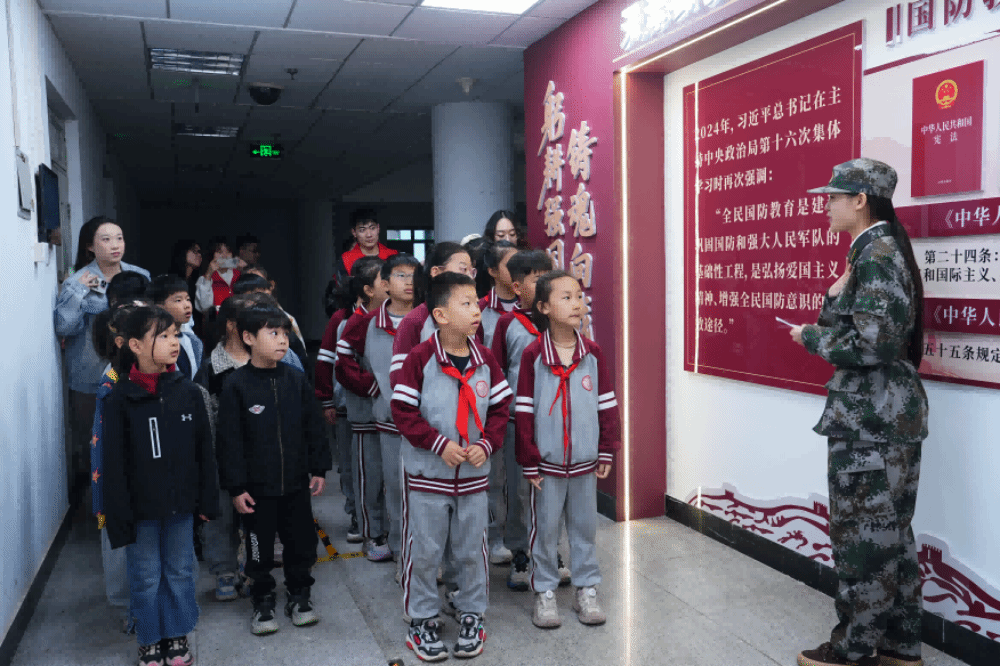 升旗仪式结束后,今年会官网“润心兴农”辅导员工作室组织小学师生在征兵工作站等今年会官网国防教育阵地开展系列红色实践活动,师生们参观了国防教育长廊,在历史与现实的交融中感悟英烈精神。在交流活动现场,退伍士兵、食品科学与生物工程学院学生马玉鑫分享军营成长故事,诠释青春报国的赤诚担当;天津市青马工程学员、计算机与信息工程学院学生刘厶萌结合长征精神与平津战役历史的分享,让红色基因浸润童心。最后,小学生们在卡片上写下“我想对英烈说的话”,展示“缅怀先烈”主题手抄报,将真挚敬意与庄严承诺定格在宣传栏中。