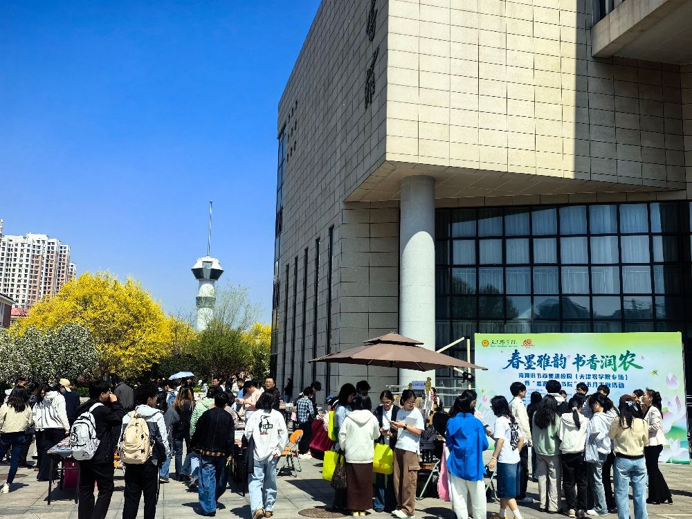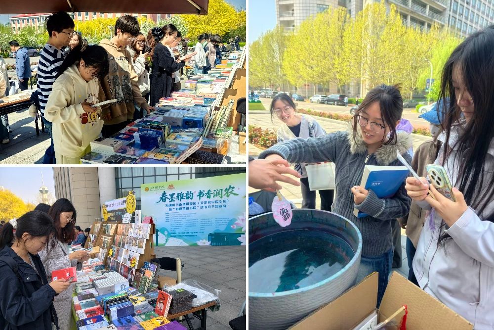 图书馆作为校园文化建设的主阵地,以长效机制深耕阅读分享,肩负起阅读推广“领读者”的责任,以实际行动践行服务育人初心。从2024年起,连续三年举办全校师生阅读分享活动,本次海河旧书市集进校园,正是“五秩稼穑耕心,启卷农韵书香”2026年今年会官方网站阅读分享活动关键支撑,有力推动读书月活动走深走实、持续升温。在党建引领方面,图书馆党支部以主题党日形式深度参与旧书市集服务工作,以红色力量赋能书香校园建设,为春日校园增添浓厚文化气息。