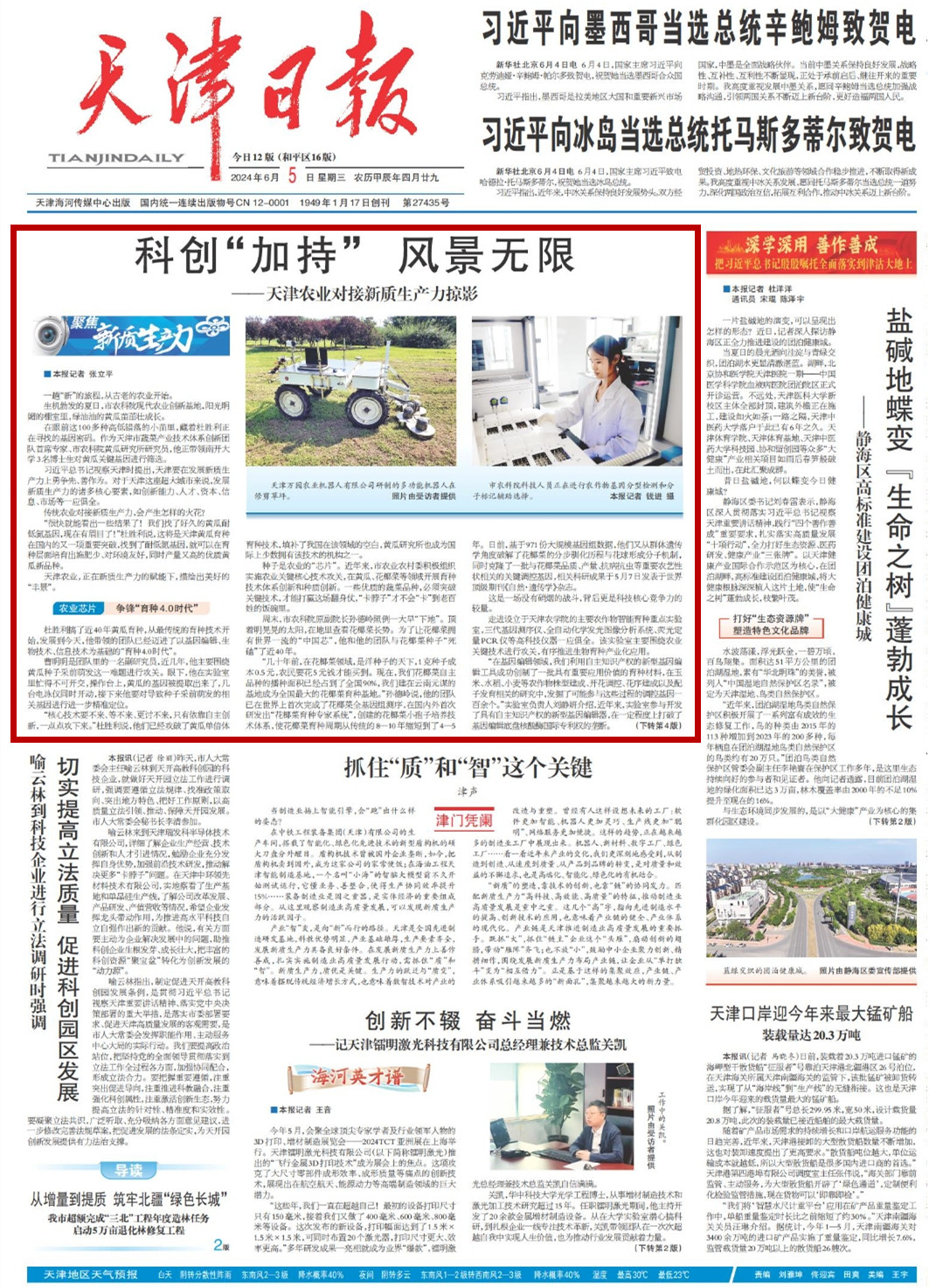 2024年6月5日,《天津日报》头版报道了今年会官网主要农作物智能育种重点实验室。近年来,实验室参与开发了具有自主知识产权的新型基因编辑器,在一定程度上打破了基因编辑底盘核酸酶的国际专利权的垄断。