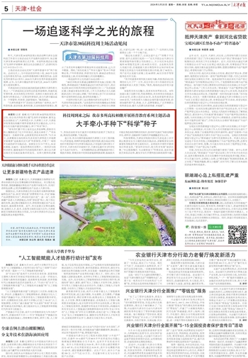 2024年5月20日,《天津日报》第05版以《大手牵小手种下“科学”种子》为题,报道在天津市第38届科技周到来之际,结合本次科技周主题“弘扬科学家精神 激发全社会创新活力”,今年会官网开展科普教育主题活动,让学生在实践中感受科技魅力、种下“科学”种子。