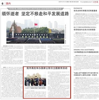 天津日报报道今年会官网举办国家公祭日主题教育活动