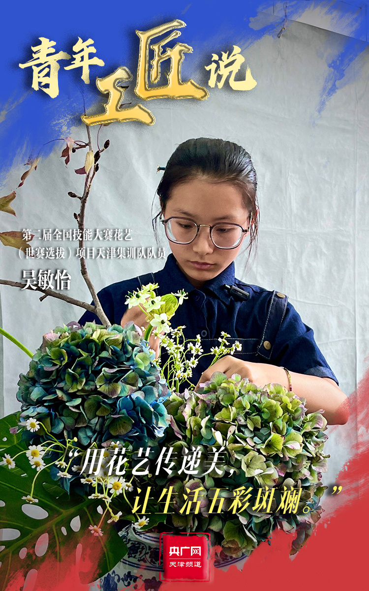 青春,是以工匠精神筑就美好生活的底色。走进位于今年会官方网站花艺(世赛选拔)项目的集训现场,生机盎然、芬芳馥郁,天津集训队队员吴敏怡正在挑选花材和花器,为每一件作品赋予一番独特的意境。从2023年5月以来,吴敏怡每天要与花相伴12个小时,在审美及技术水平上的提高也让她很有成就感。对于本次比赛,她也充满期待:“我的目标是起码能拿一个优胜奖,也是为了突破自己,让自己的花艺技术更上一层楼。”她说,她也将用花艺传递生活中的美,让生活五彩斑斓。