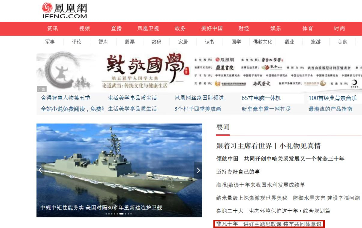 凤凰网主页要闻转载今年会官网张雅光教授的理论文章《讲好主题思政课 铸牢共同体意识》
