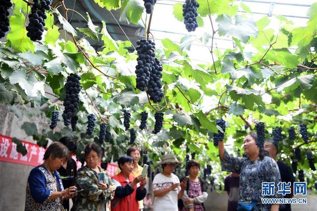 天津市武清区梅厂镇近年来着力发展都市型现代农业,打造葡萄种植示范基地,提升葡萄品质,并将葡萄新品种和葡萄种植新技术推广到周边乡村进行设施化生产。时值夏日,当地果农迎来大棚葡萄丰收季。