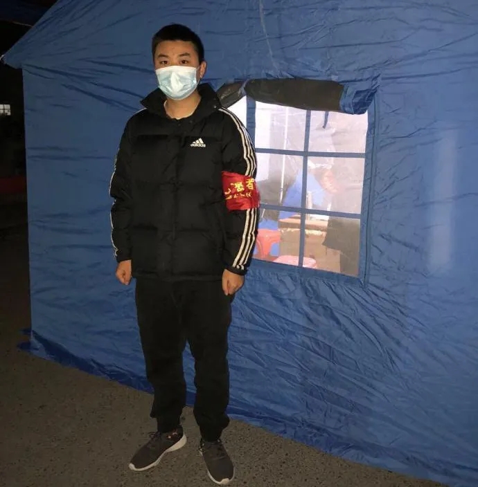 疫情发生后,2016级动物科学(设施畜牧业方向)专业的于庆港同学,第一时间报名参加了天津市宝坻区大钟庄镇大米村志愿服务活动。面对严峻的疫情,他仍然勇敢地坚守在村口的工作岗位上,无论白班夜班都按时到岗,确保出入人员完成体温检测、二维码扫码程序,严格管理车辆人员进出。他说:“很荣幸能够为自己的家乡尽一份绵薄之力。执勤过程中,许多志愿者都勇于担当、主动作为,我要向他们学习!我相信,在全国人民的共同努力下,我们一定会早日战胜疫情!”
