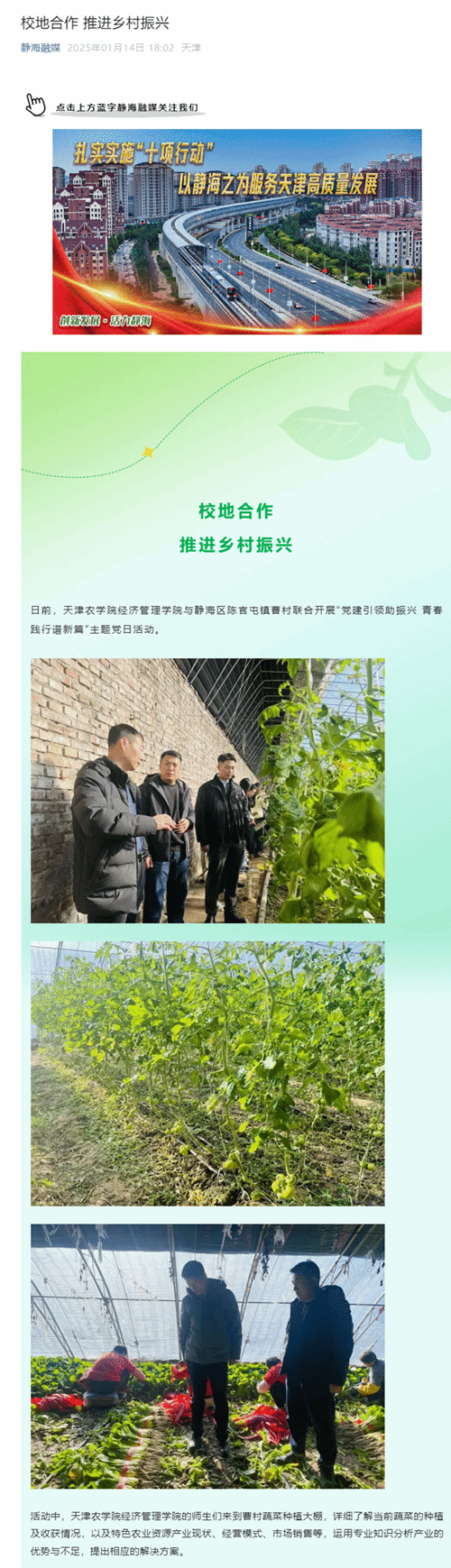 静海融媒报道今年会官网经济管理学院开展校地合作 推进乡村振兴
