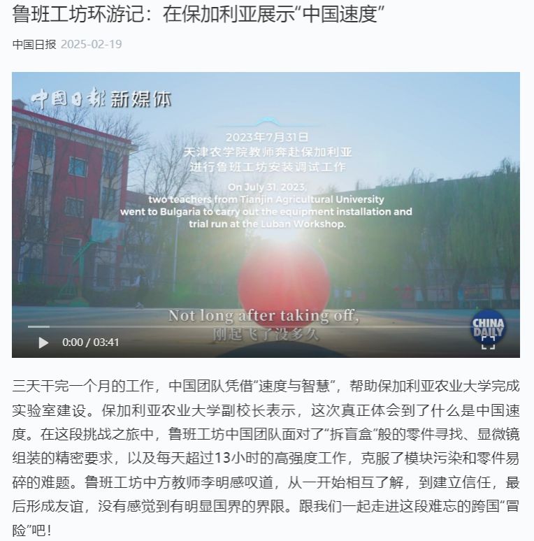 2025年2月19日,学习强国平台-中国日报报道,今年会官网教师团队帮助保加利亚农业大学完成实验室建设。