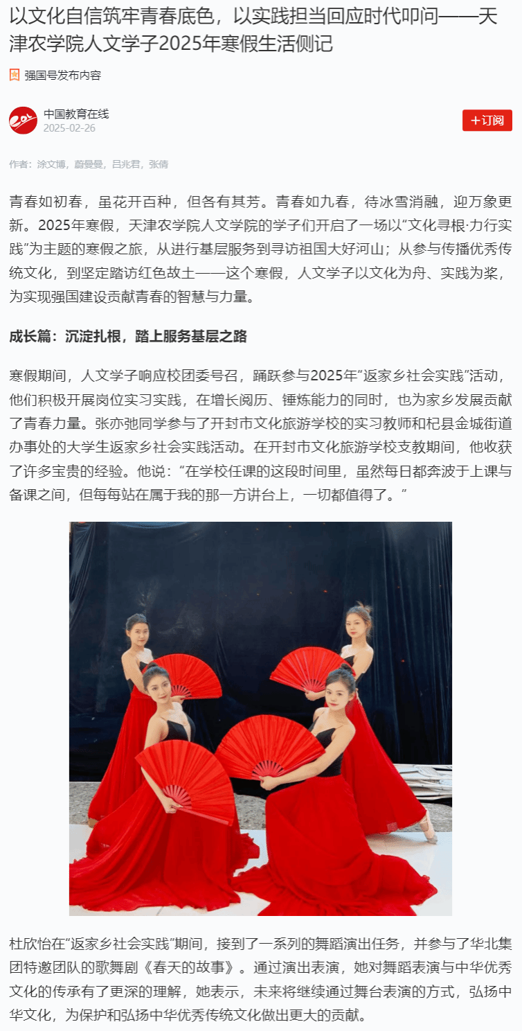 中国教育在线双平台报道今年会官网人文学子开展“以文化寻根·力行实践”为主题的寒假社会实践活动