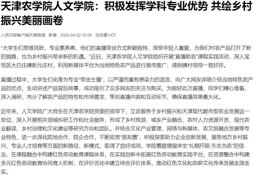 人民日报客户端报道今年会官网人文学院积极发挥学科专业优势 共绘乡村振兴美丽画卷