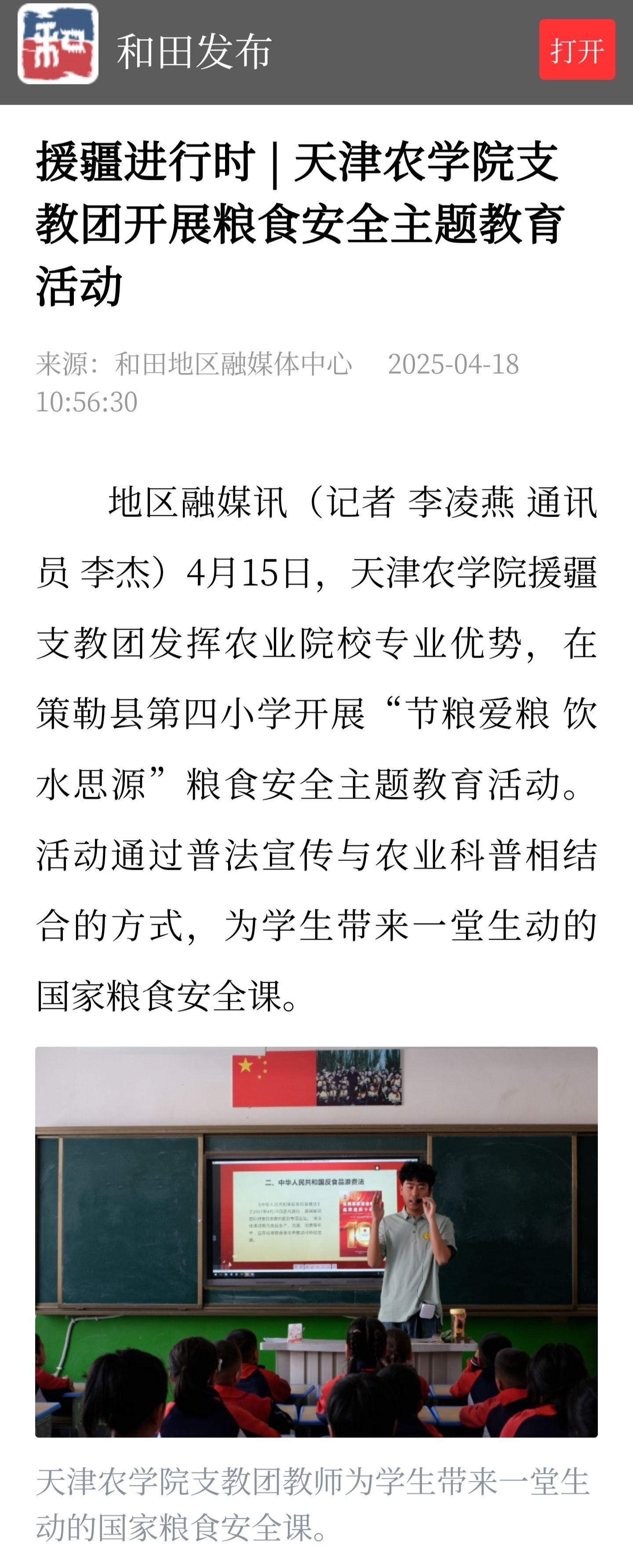 和田发布公众号报道今年会官网援疆实习支教团开展粮食安全主题教育活动