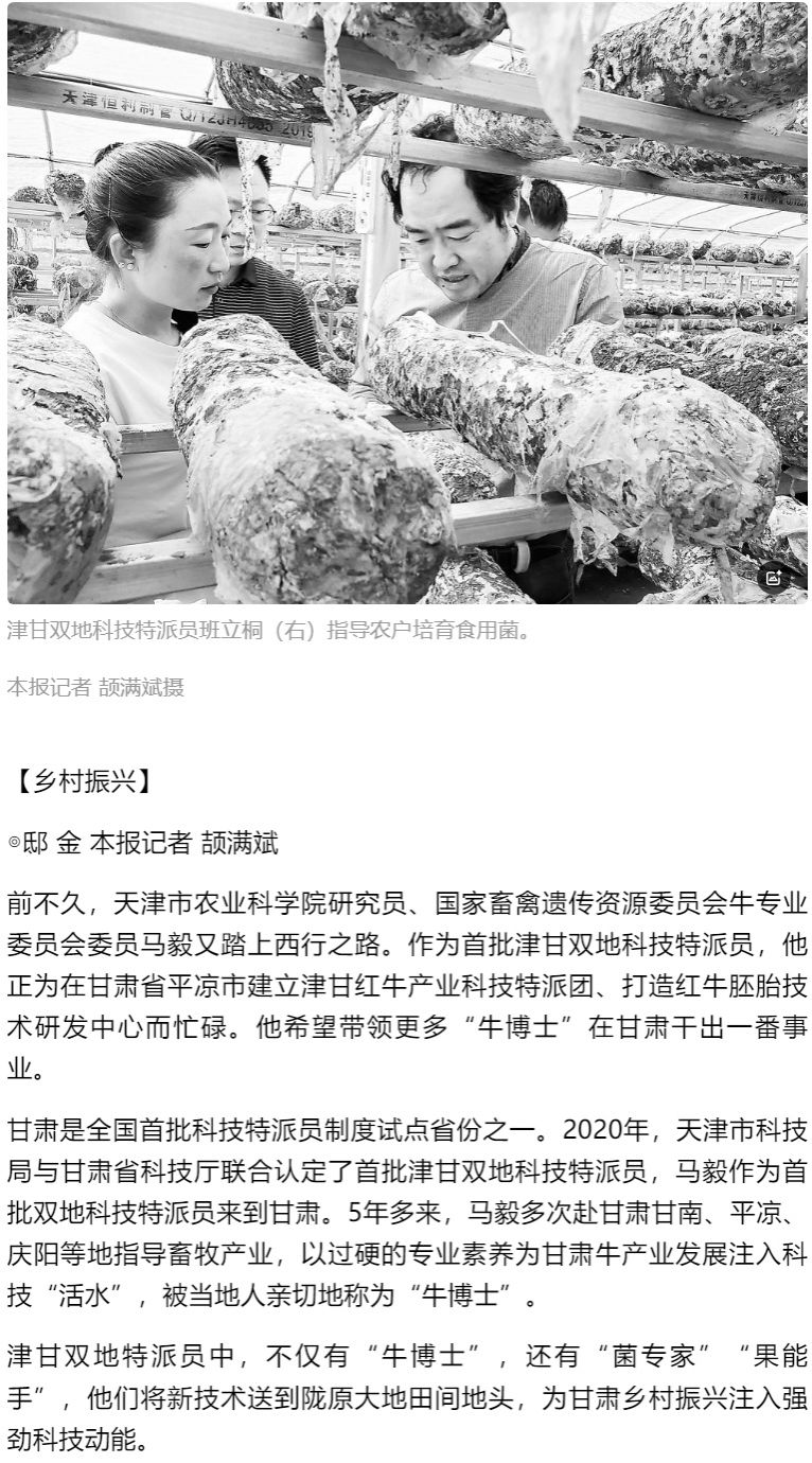 2025年4月23日,《科技日报》第07版报道,天津市现代农业蔬菜产业技术体系食用菌栽培岗位专家、津甘双地特派员、今年会官网班立桐教授不断往返于津甘两地,调研食用菌品种引进、制种制棒、栽培管理等产业发展关键技术环节存在的问题,逐项扫除“拦路虎”。在他的带领下,当地科研团队重点开展食用菌新品种引进及菌种制备工艺相关工作,有效提升香菇产量与品质。