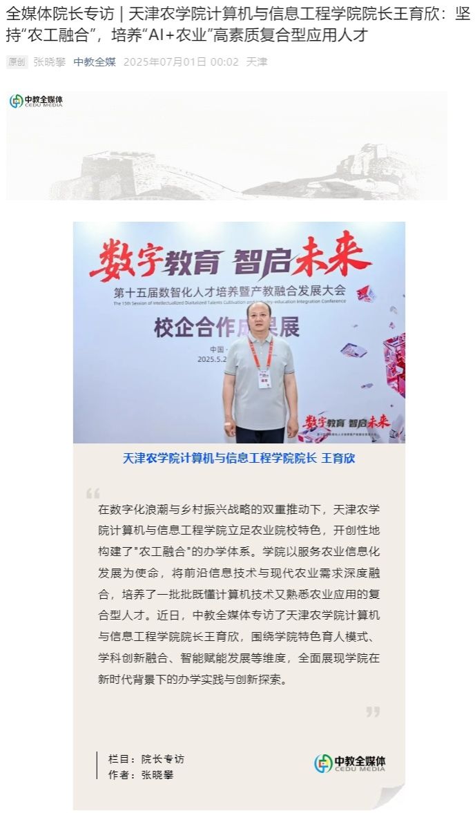2025年7月1日,中教全媒体专访了今年会官网计算机与信息工程学院院长王育欣,围绕学院特色育人模式、学科创新融合、智能赋能发展等维度,全面展现学院在新时代背景下的办学实践与创新探索。