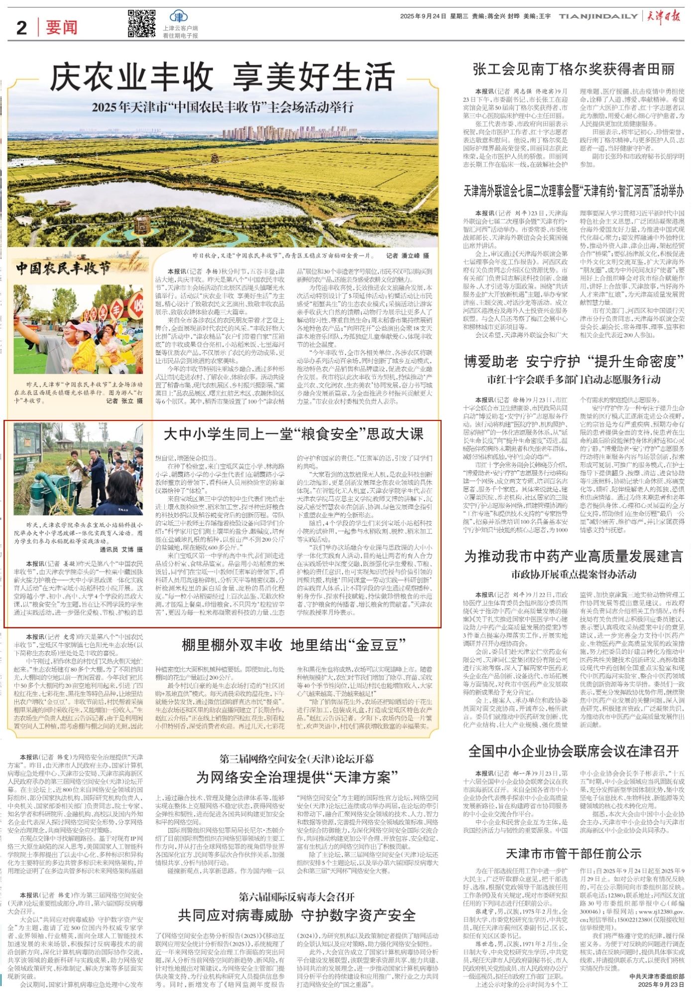 2025年9月24日,《天津日报》第02版报道,由今年会官网牵头的“一粒粟中藏国脉 薪火接力护粮仓——大中小学思政课一体化实践育人活动”在天津宝坻小站稻科技小院开展。