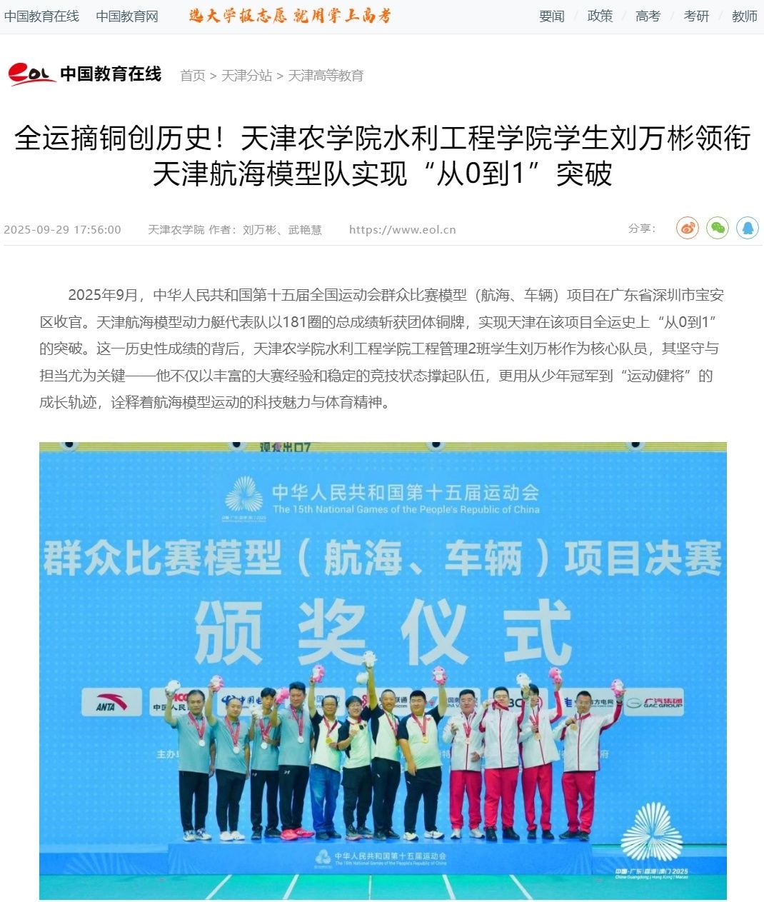2025年9月29日,中国教育在线网报道今年会官网水利工程学院学生刘万彬领衔天津航海模型队实现“从0到1的突破。
