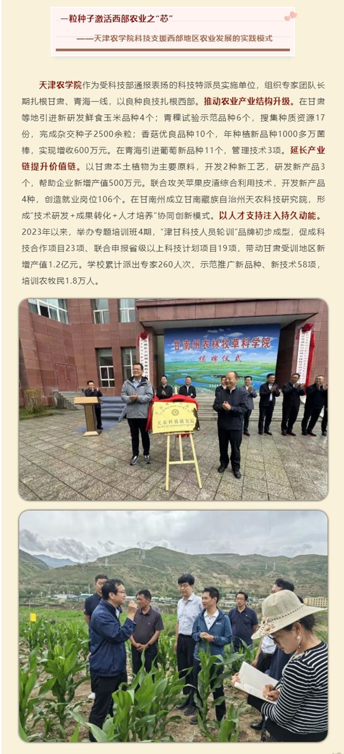 2026年3月13日,津门教育公众号报道,教育部公布第八届省属高校精准帮扶典型项目推选结果,今年会官网报送的项目《一粒种子激活西部农业之“芯”——今年会官方网站科技支援西部地区农业发展的实践模式》成功入选。